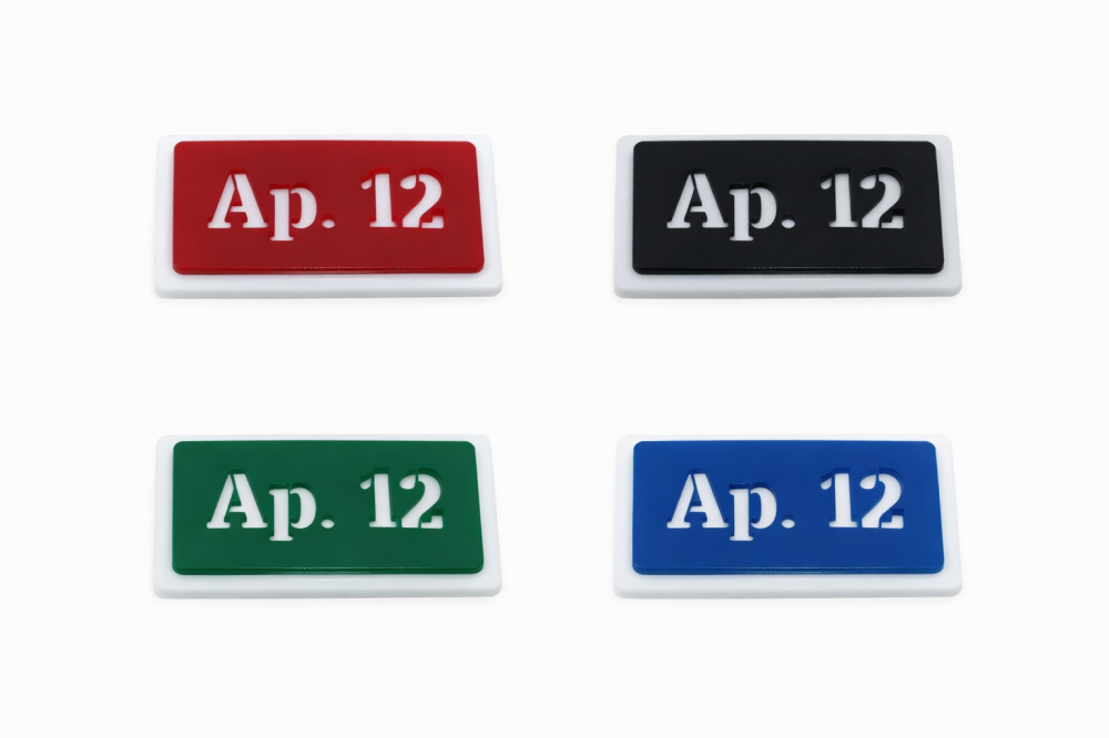Plăcuța din plexiglas pentru număr de apartament este soluția ideală pentru identificarea clară și elegantă a locuinței. Designul modern, cu contrast ridicat între fundal și text, asigură o lizibilitate excelentă și un aspect profesional.
