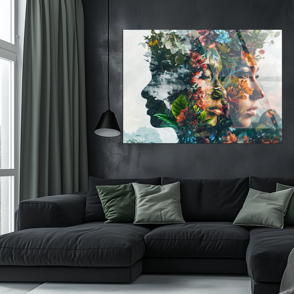 Tabloul este realizat din sticla acrilica (plexiglas) premium, cu print UV de inalta rezolutie. Suprafata lucioasa evidentiaza detaliile florale, transparentele si claritatea chipurilor.