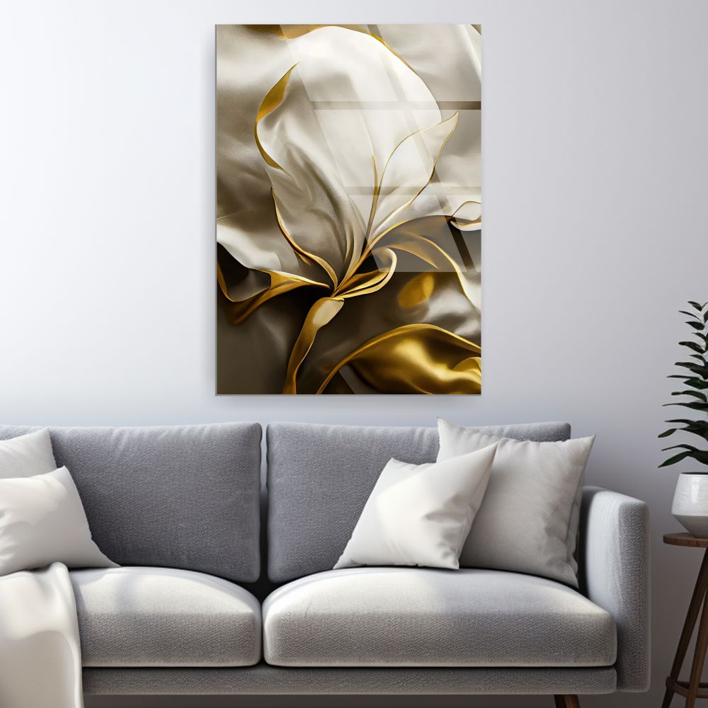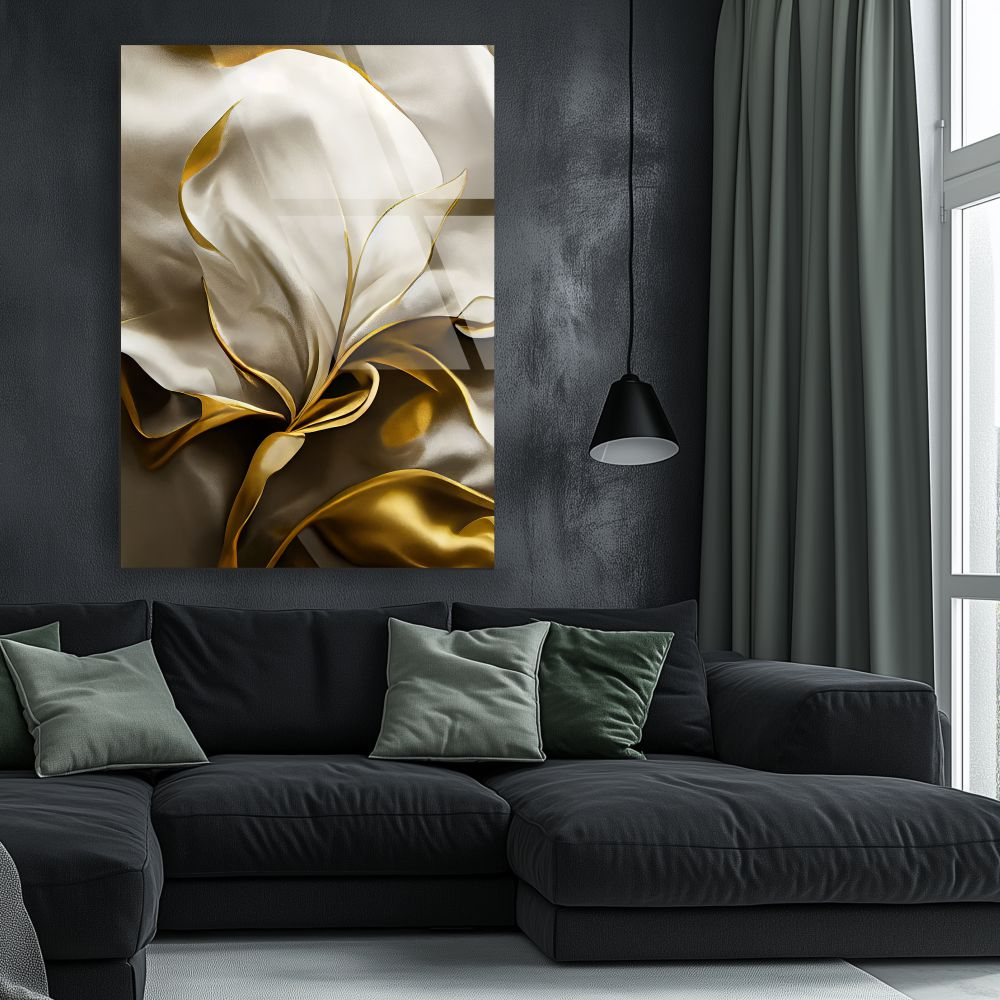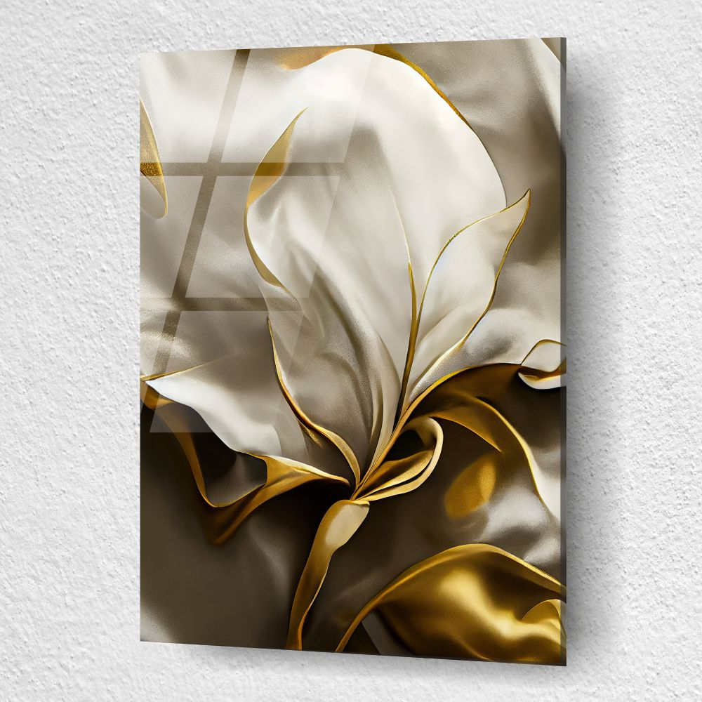 Tabloul este realizat din sticla acrilica (plexiglas) premium, cu print UV de inalta rezolutie. Finisajul lucios accentueaza delicatețea texturii satinate si evidentiaza accentele aurii, oferind claritate si rafinament vizual.