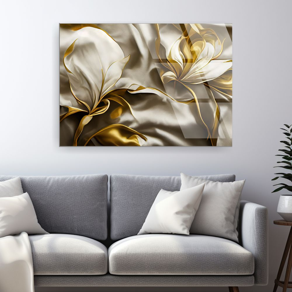 Tabloul este realizat din sticla acrilica (plexiglas) premium, cu print UV de inalta rezolutie. Finisajul lucios amplifica efectul satinat si reda fidel detaliile fine si accentele aurii, oferind claritate si rafinament vizual.