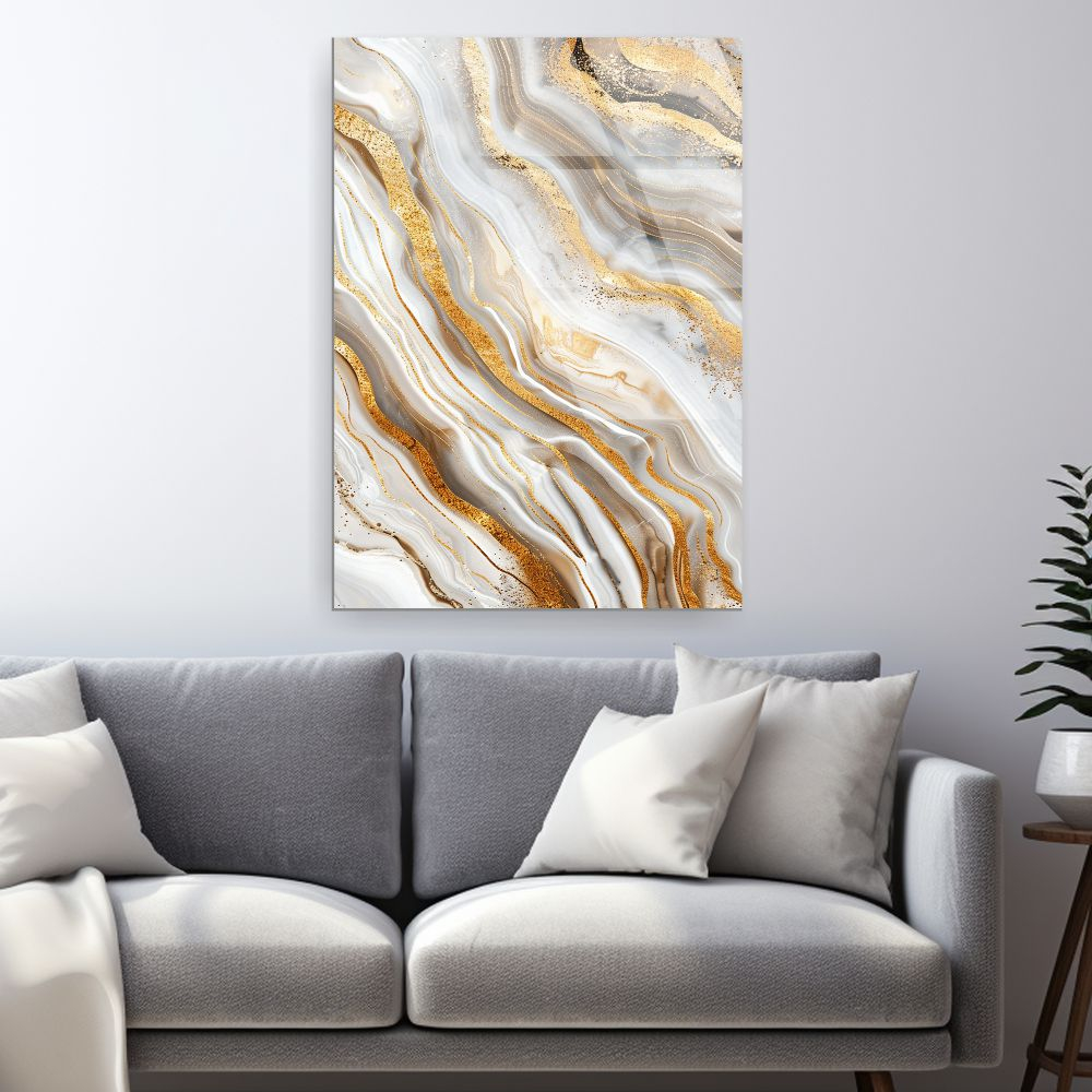 Tabloul este realizat din sticlă acrilică (plexiglas) de 5 mm, imprimat UV la rezoluție înaltă. Claritatea acrilicului evidențiază detaliile stratificate și accentuează reflexiile aurii.