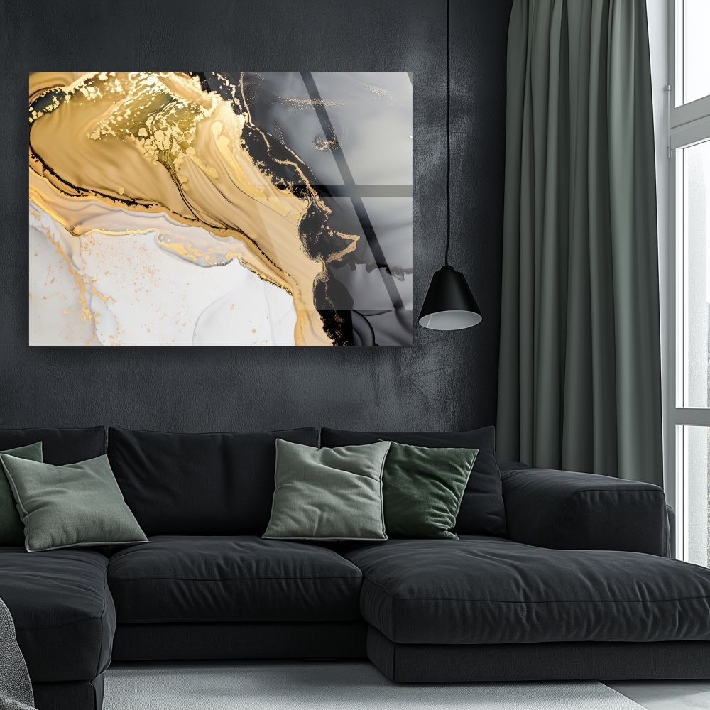 Tablou abstract Molten Gold Contrast pe sticlă acrilică